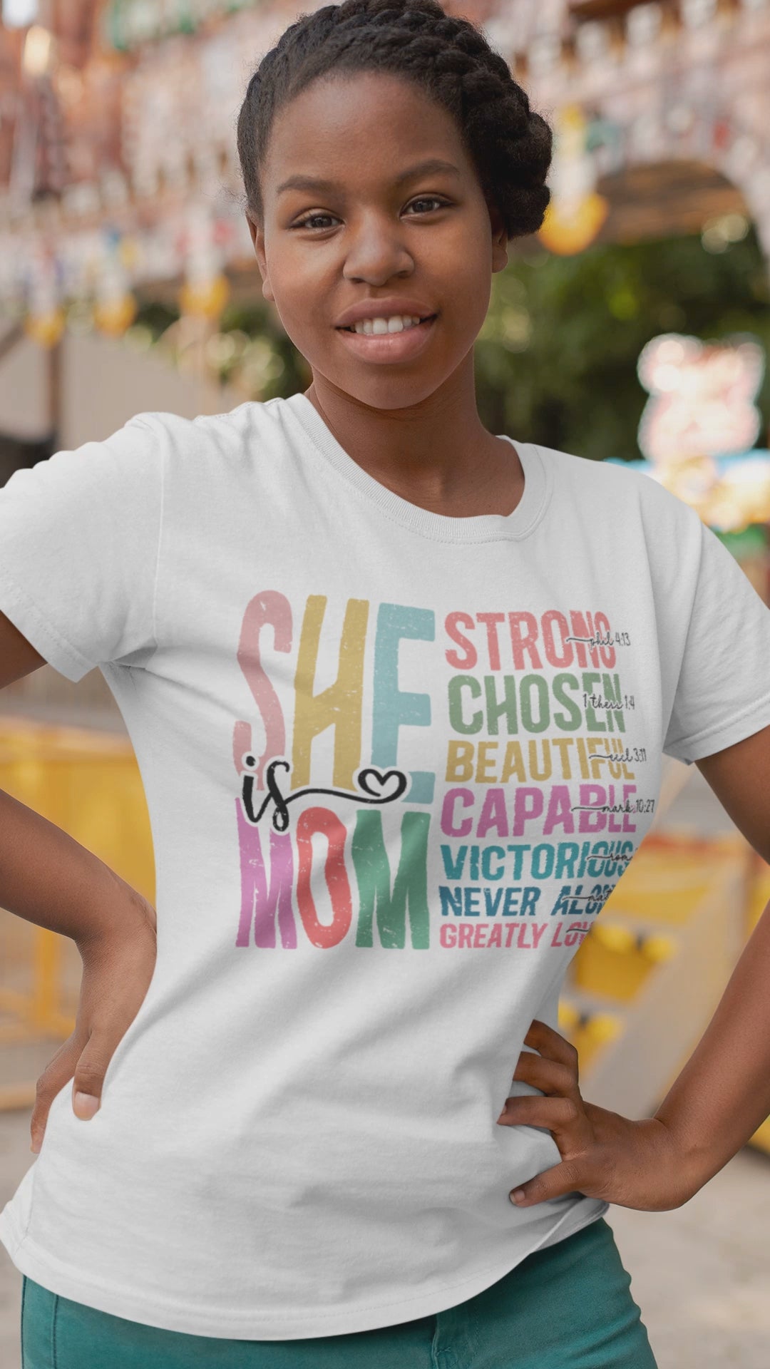 Celebrate the strength, beauty, and faith of the women who mean the most. This vibrant and uplifting “She Is Mom” T-shirt is more than just a Mother’s Day gift—it’s a declaration of divine identity and biblical truth.